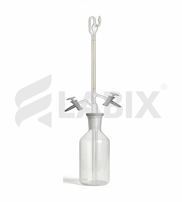 Karl Fischer titration–compatible automatic burette featuring a top-mounted zero device and a syphon-type overflow return for smooth reagent handling. Supplied with a 500 ml amber reservoir to protect moisture-sensitive solutions, a calcium chloride drying tube, and two high-vacuum PTFE stopcocks for exceptional leakproof performance. Manufactured to Class ‘A’ precision and delivered with a works certificate for assured accuracy and reliability in analytical labs.